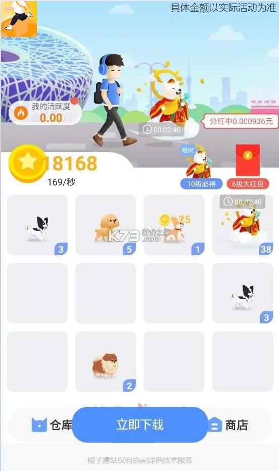 《欢乐旅行》这是一款关于狗狗合成的一款趣味性的赚钱小游戏,游戏和旅行世界非常相似,游戏新人进行下载登陆的话将可以享受88元的现金红包奖励,空闲的时候进行将相同的狗狗进行合成,合成的等级越高赚钱越多。