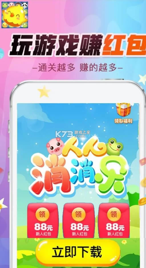 《人人消消乐》这是一款采用的是可爱风的一款趣味性的消除赚钱小游戏,里面将有超多的不同颜色的方块,需要将颜色相同的方块进行连成一起进行消除,超多的关卡进行设置,闯关成功的话将有红包奖励领取。