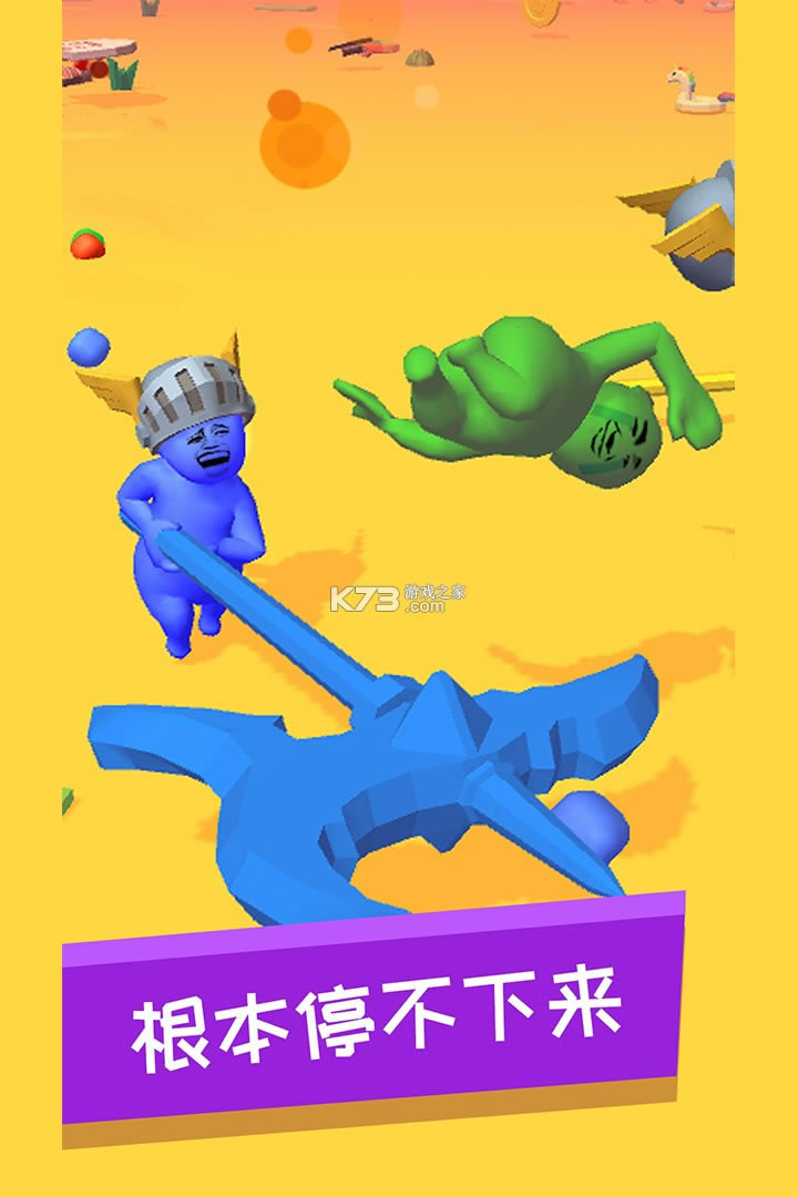 完成游戏还可以解锁更多的皮肤,挥动大鲨鱼等魔性的武器去攻击敌人吧。游戏超爽超解压,创新的大锤互捶玩法让游戏中的对决十分刺激,魔性欢乐的锤来锤去!魔性翻倍!快乐翻倍!不服就来捶我!