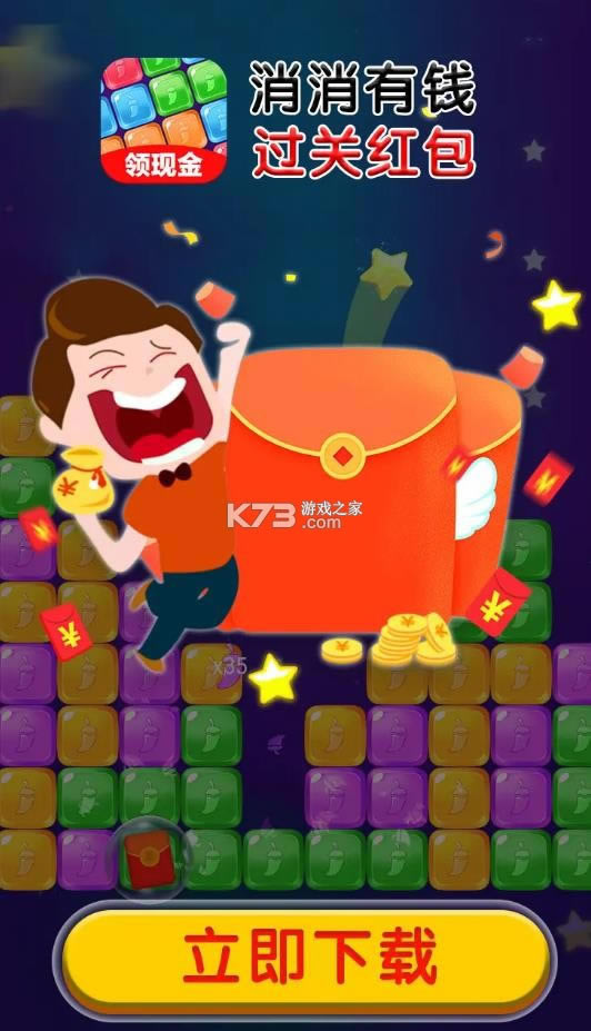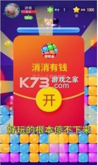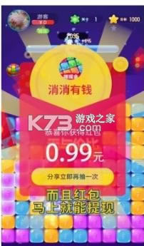 《消消有钱》这是一款采用的是经典的消除的一款趣味性的消除赚钱小游戏,在游戏中里面将有超多的靓丽的游戏画面感,里面超多的不同颜色的方块,需要将相同的方块进行全部都消除,超多的关卡进行设置,闯关成功的话将有红包奖励领取。