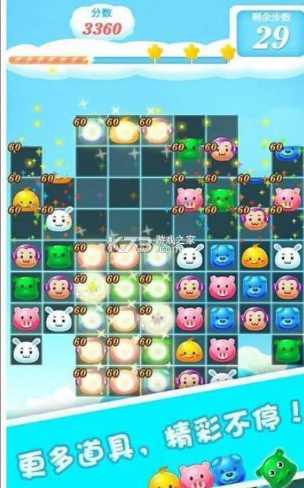 呆萌可爱的消除的游戏,轻松而又新游的魅力,加入各种各样的趣味的萌宠乐趣,有时候需要靠点点小的运气,多种关卡下完成各种不同的目标,拯救消除的旅程,以经典的三消为原型,很多可爱的萌宠来加入,开动脑筋来开启多种尝试,完成各种不同的目标吧。