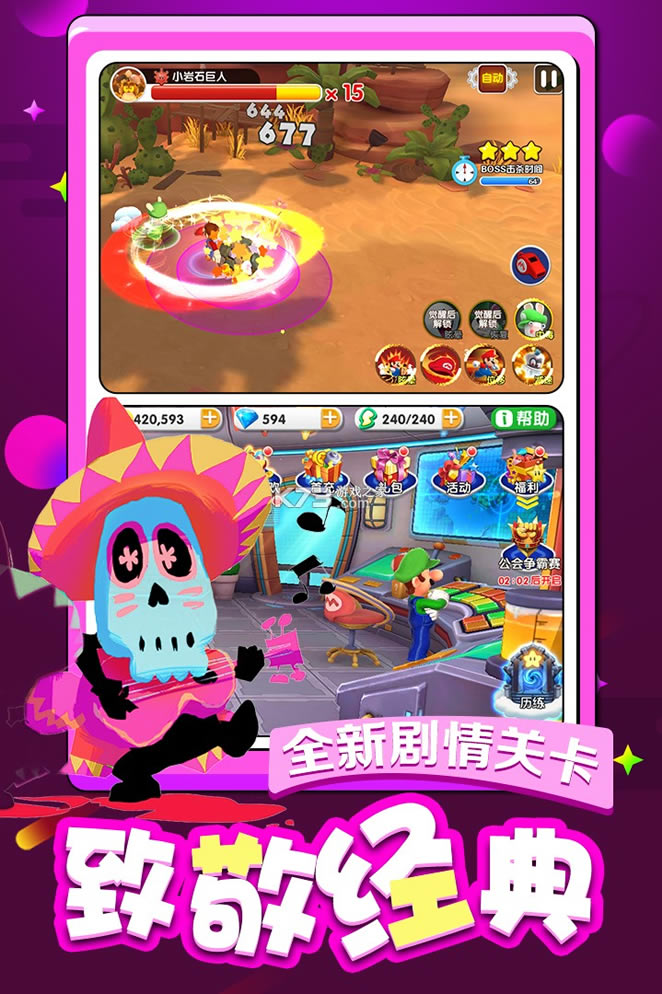 全新操作冒险手游火爆来袭!90年代的经典回忆!还原经典人物造型,再续拯救公主的大冒险,创新放置自动闯关玩法,拒绝爆肝,让你快速升级!结合丰富的任务系统和PVP战斗,深度交互,让你尽情探索副本世界!多维度的队伍养成系统,耳熟能详的维修工救公主故事,更有SSR伙伴神秘降临,让你战力飙升!重温美好回忆,给你最棒的冒险体验!