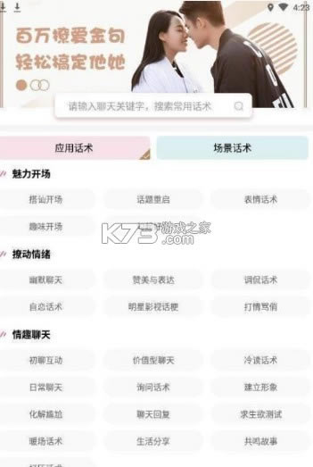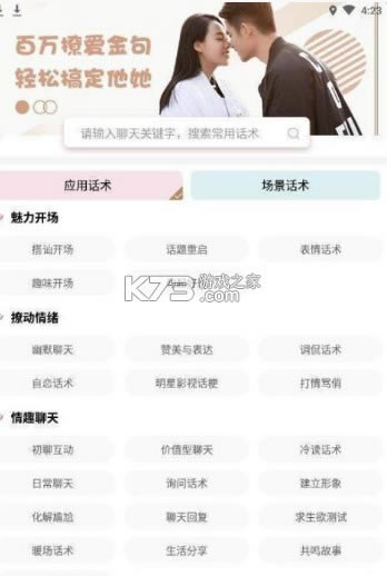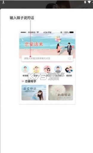 本app里面包含了各种恋爱的话术哦,还有各种聊天功能,各种话题套路,层出不穷。