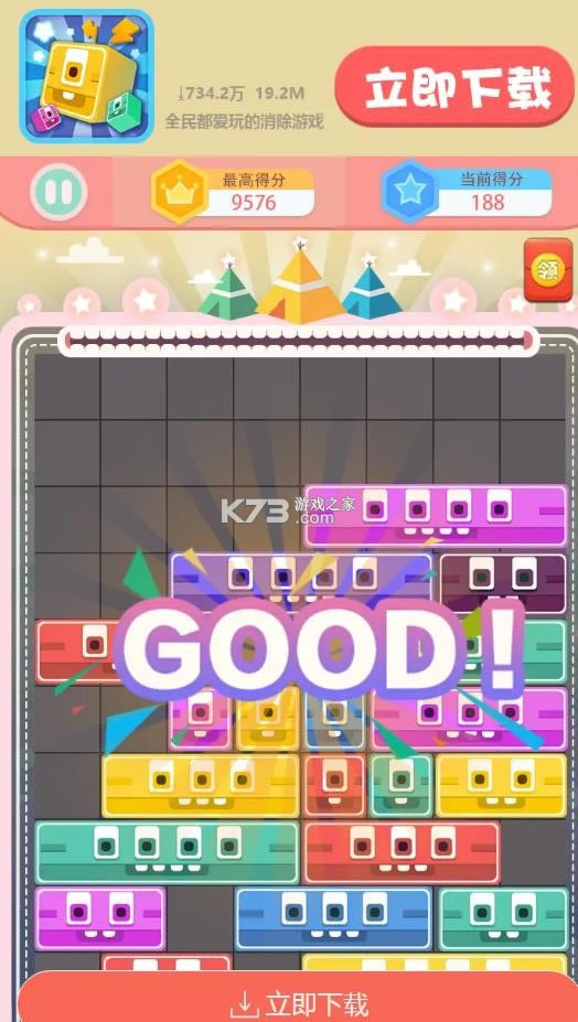 《犀利方块》这是一款采用的是非常靓丽的游戏画面感,在游戏中里面将有超多的不同类型的方块形式,需要将里面颜色相同的方块进行全部都消除,超多的关卡进行设置,闯关成功的话将有红包可以领取,让其可以轻松的玩消除赚钱。