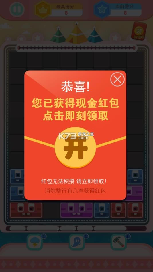 消除获得的分数越多,获得的红包奖励也就越多;