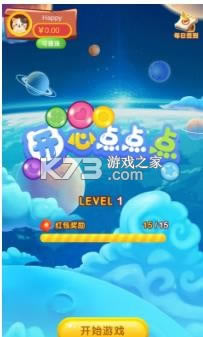 《开心点点点》这是一款采用的是消除的一款趣味性的赚钱小游戏,游戏的画面感非常的绚丽,在游戏中里面将有非常多的泡泡,需要将相同颜色的泡泡进行消除,超多的关卡进行设置,闯关成功的话将有红包奖励,让其可以轻松的赚钱。