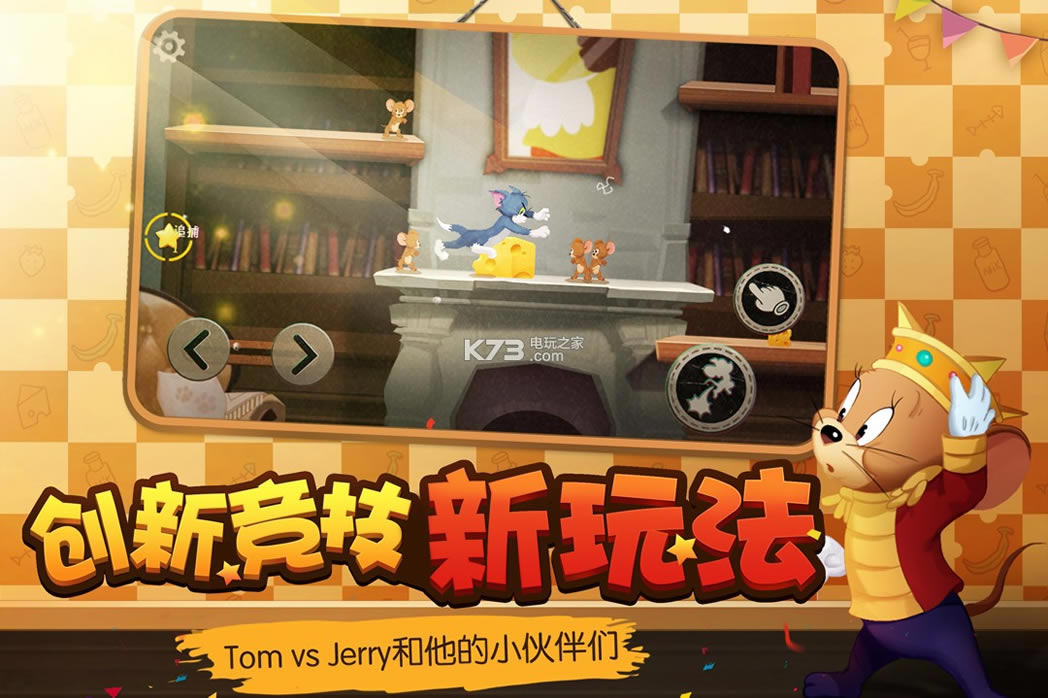 《猫和老鼠》全新1v4欢乐互动玩法,每局游戏中,5名玩家分别扮演1只猫和4只老鼠,在家里展开一场激烈的追逐游戏,猫需要寻找和抓住一个个搬运奶酪的老鼠,而老鼠们需要联合起来搬运一定的奶酪并从老鼠洞逃走。自由的操作、复杂的场景、欢乐的追逐,每局比赛都会有不同的体验,赶快打开游戏感受一下吧!