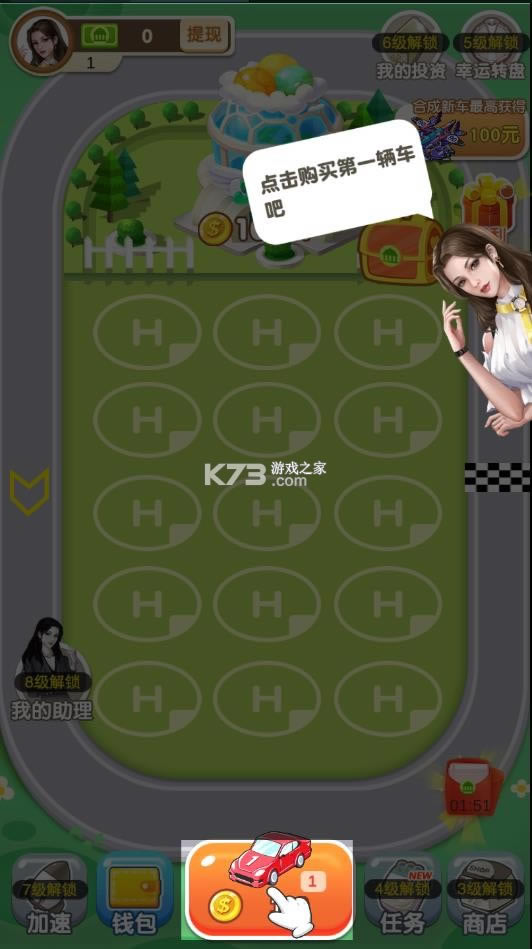 汽车梦工厂是一款经典的小车车合成游戏,最大的亮点,还是可以赚红包哦。在这里从最低端的车车开始合成,然后不断的获得高等级的车,就可以积累红包的额度了,想要提现的话,是需要点击钱包,然后绑定账号的。