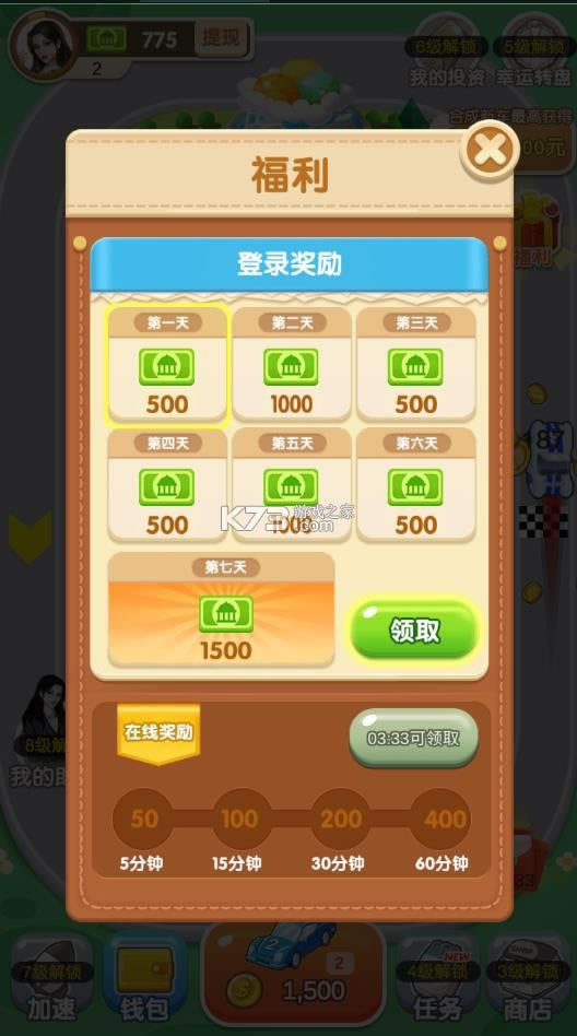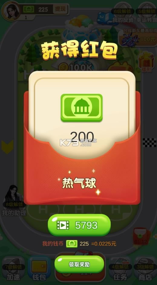 汽车梦工厂领红包是真的,合成2辆相同的汽车,得到更高等级的汽车,同时将汽车放到赛道上,