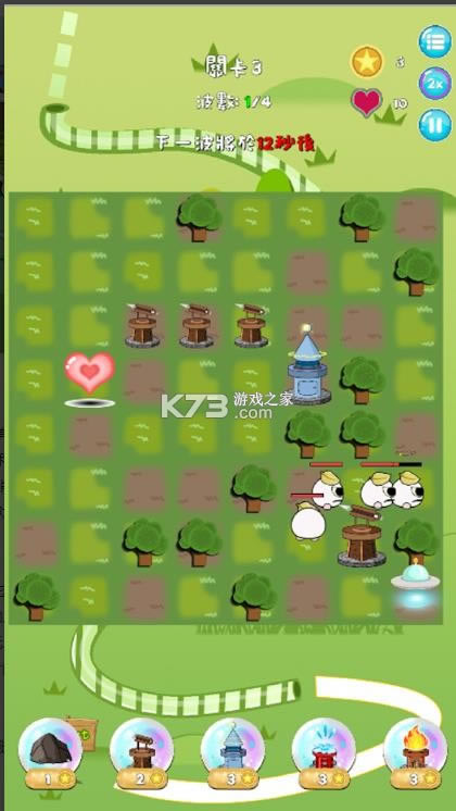是一款有着超萌系的全地图塔防游戏,在游戏中玩家需要运用佈局谋略消灭所有侵袭的怪物,狡猾的怪物会利用最短的路程进行侵袭,你必须在地图上建立各种战塔/障碍物令怪物花更长时间到达终点,从而消灭怪物。不同的战塔有不同的特效,电塔、水塔、火塔、减速、晕眩等特效都能让你杀死怪物!游戏以闯关模式进行,关卡难度循序渐进,不同风格的关卡等你来挑战!