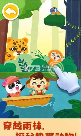 雨林有很多动物,找找看有哪些,深入丛林,寻找美洲豹,在河流上,认识凯门鳄,宝宝快看,是巨嘴鸟,拍下它们的照片吧。