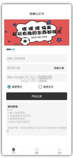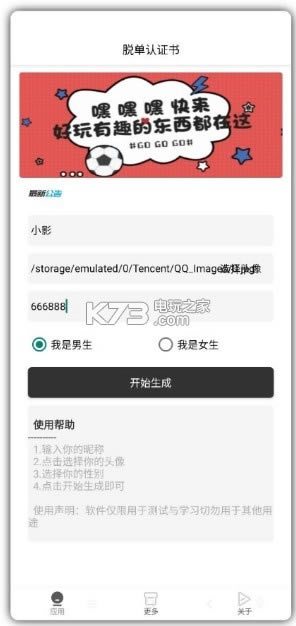 《520脱单建议书》在这里可以直接下载进行生成了,生成的过程也是很简单的,你可以生成你自己的脱单证书,也能够上传你朋友的名字和头像,给他生成他的专属脱单建议书。
