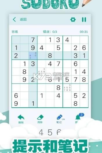 记笔记以跟踪可能的数字。你每填一个单元格,笔记都会自动更新!
