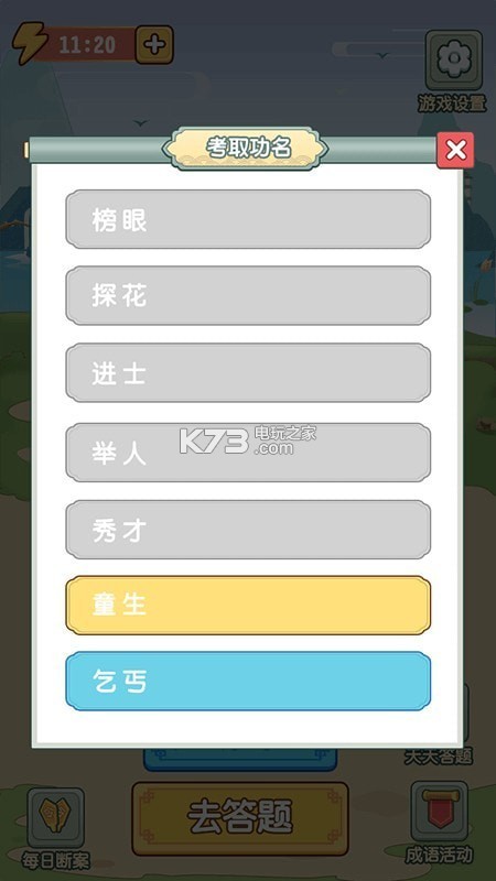 3、答题消耗体力,当你连续挑战10关,就需要休闲一下等待体力恢复。