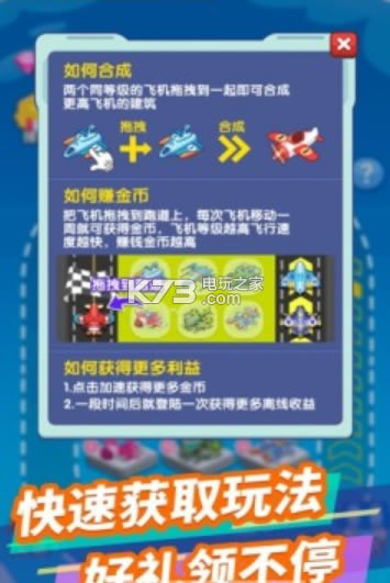 《飞机大战-合成战机》是一款放置类游戏,轻松合成各种造型的飞机,更有限量版飞机等你来挖掘!如此逼真的飞机游戏,精美的造型,收集控们还在等什么?
