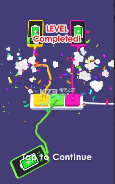 游戏中,玩家要将所有充电器插在线板上,顺利的将手机充满电并完成关卡。