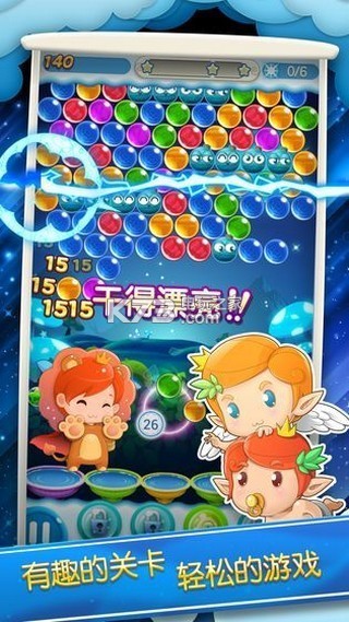 调整方向将泡泡发射出去,碰到同色泡泡就能消除,拯救宝宝吧,还能够来获得红包。