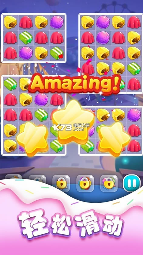 一款十分其实简单的消除类休闲游戏。这里面主要的核心元素是各种可爱的糖果,只要将所有的闯关任务完成,是能够领取到很多福利的,这些福利足够吸引大量的玩家前来体验。再说游戏的内容也是蛮精彩有趣,可以让你爱不释手。