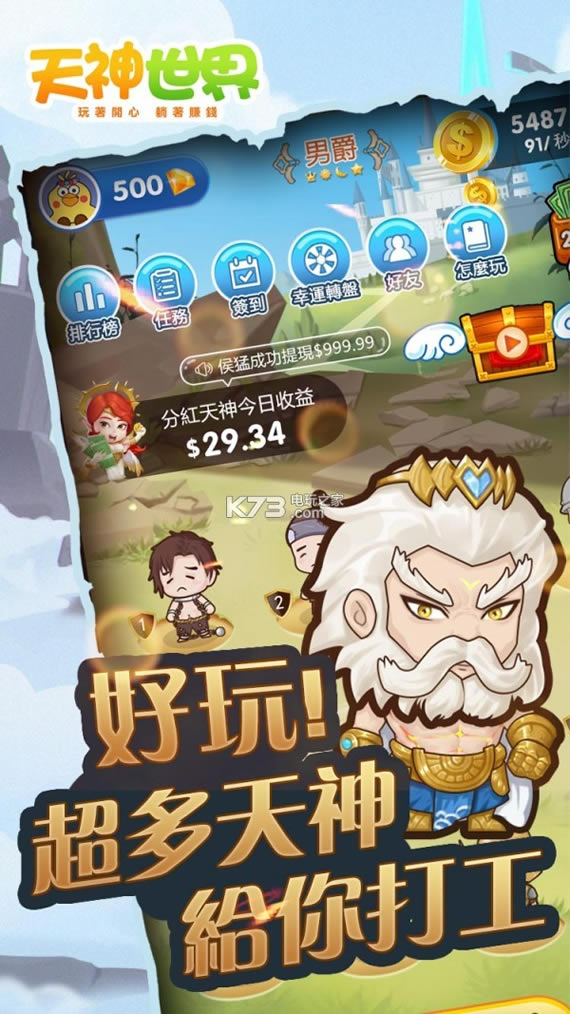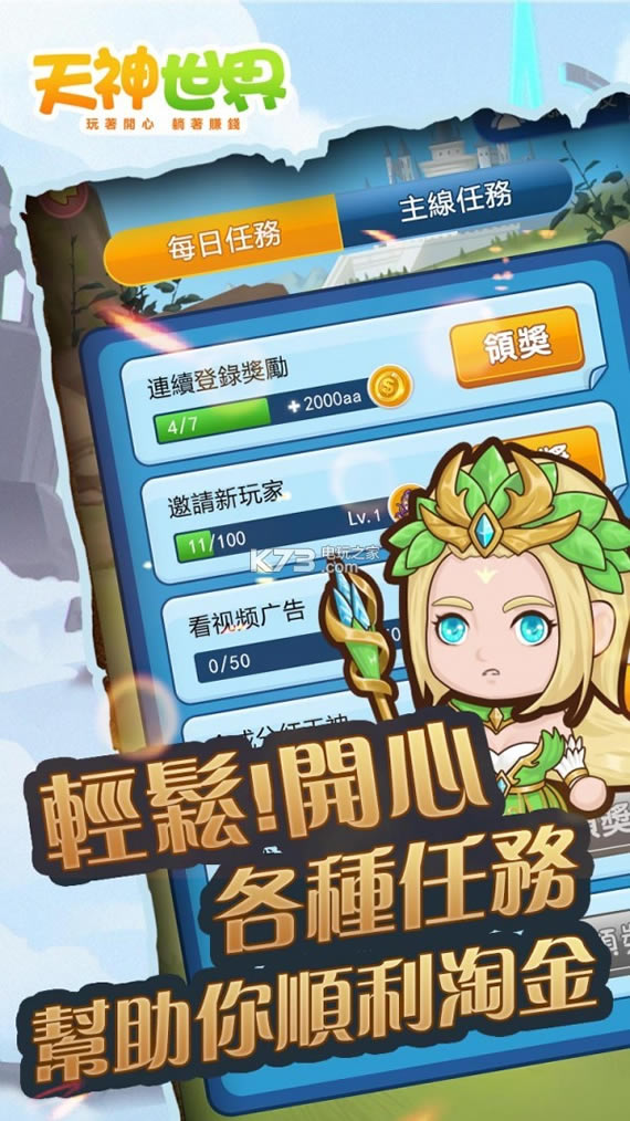 《天神世界》这是一款关于赚钱的一款小游戏,在游戏中采用的是合成的玩法形式,将各种小天神养成在你的基地,并且还需要进行一一的合成,让你可以轻松赚红包奖励。