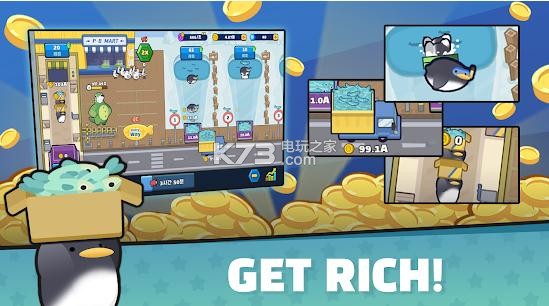 带领您的企鹅捕捞,运输,展示鱼类以致富。聘请经理来自动化您的业务并轻松增加您的闲置资金。收集更多他们,以便使用更强大的经理技能来最大化您的利润。