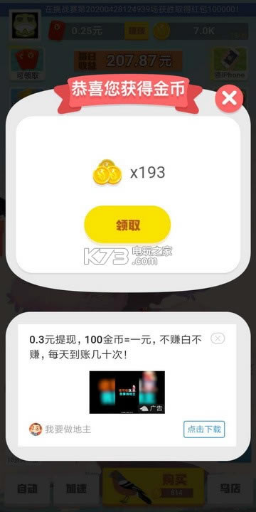《小鸟对对碰》这是一款采用的是合成的一款趣味性的赚钱小游戏,进行合成升级小鸟的话就会获得分红奖励,成功引到凤凰可获得平台广告收益分红,里面超多的赚钱玩法形式,还可以邀请好友一起赚钱。