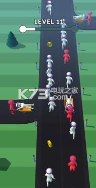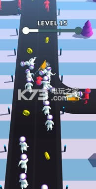 《奔跑吧小泥人》一开局的时候玩家只有一个人,到各个领域地区去网罗人,让大家跟随着你的步伐一起奔跑起来,注意一些障碍物和比自己人数多的队伍,你会被削弱或者直接吞噬掉的.