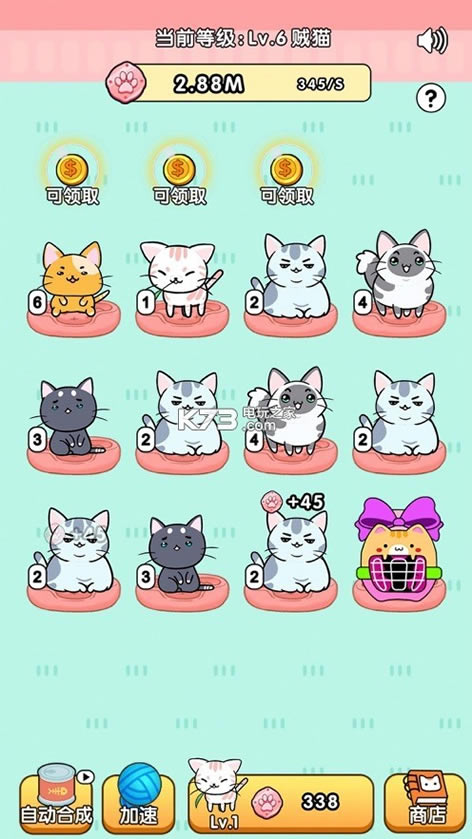 3、通过两种相同的猫咪进行合成,让你的猫咪进化,获得更多的红包奖励;