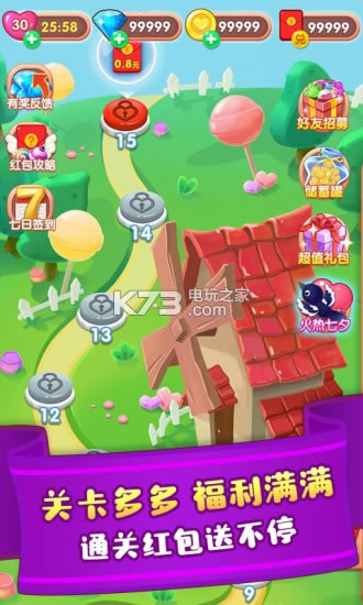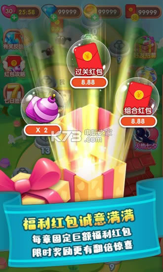 《开心消除红包版》是款可以来尽情进行红包消除的小游戏啦,一款只要你消除就可以来都红包的手游,能够在娱乐的同时赚钱哟,给你更好的游戏消除体验,更放松的游戏内容和模式,还在等什么直接下载吧。
