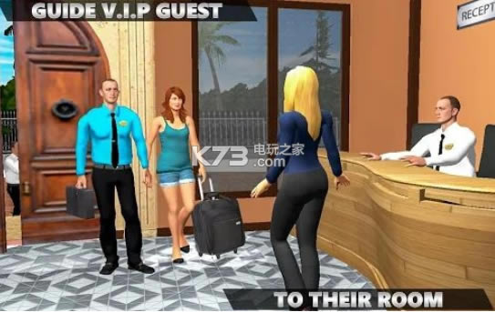 2、品质非常高的3D画面,游戏内的真人模式的情况还有角色的服装等,形象俱佳的酒店经理和客人;