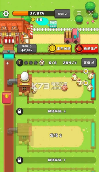 2、合理规划场地,让小鸡持续为你提供收入,解锁更多的养殖区域;