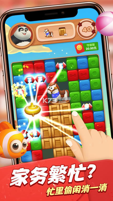 全新创意消除游戏,享受爆破数以百万的方块和玩具所带来的快感,匹配相同颜色的方块,创造强有力的道具组合,解决困难重重的关卡,尽情享受手指与大脑所带来的无限默契配合吧!
