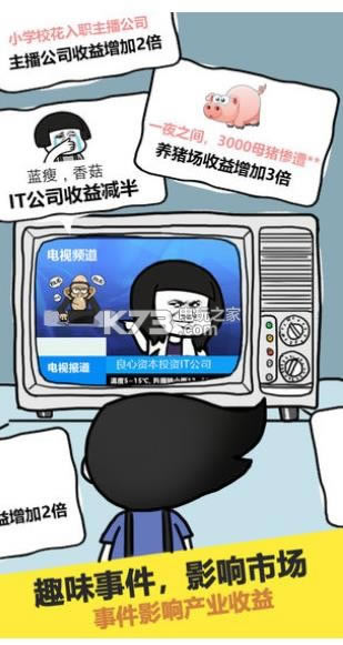1.各种趣味事件发生,你需要根据市场情况做出各种选择,会影响产业收益;