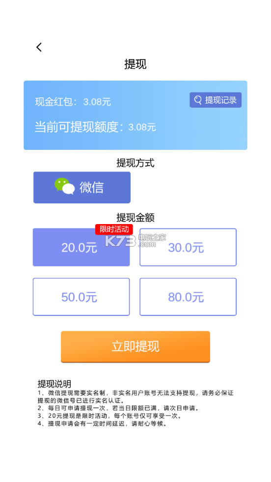 2、每天会发放制定金额奖池,当天奖池被领取完后,则无法继续提现。