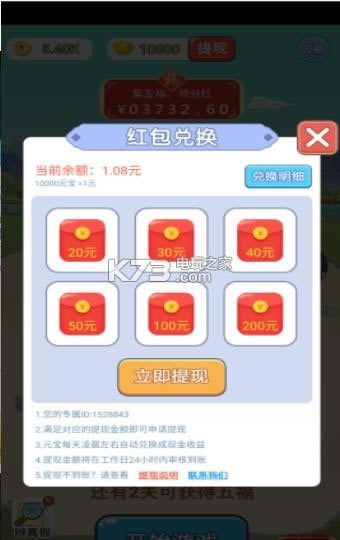 1.红包兑换安全可靠,通过查看余额就知道当前红包还剩余多少可以兑换,最低可以兑换0.3元,进入游戏就可以兑换得到三毛钱了;