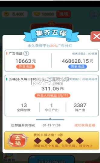 4.持续体验游戏让红包收益更多,这是依靠日积月累获得收益并集齐五福获得红包玩法的游戏,只有玩家完成游戏任务才能得到分红。