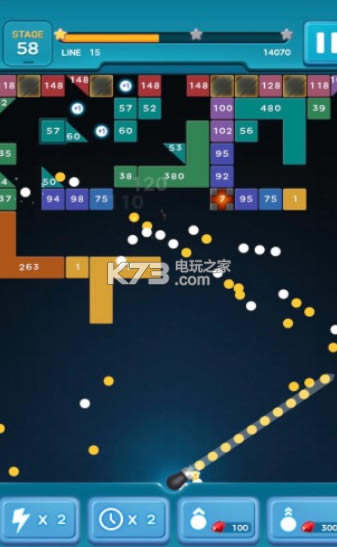 2、使用更多的金币来提升你的威力,让子弹更多并能快速清除它们;