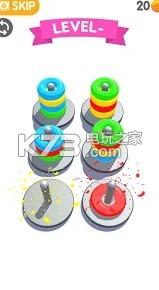 《Color Sort 3D(颜色排序3d)》是一个颜色排序类型的游戏,玩家在这里操控这些指环,将相同颜色的指环归置到一起,游戏的时间是有限的,有尽量节约时间的方式进行游戏.