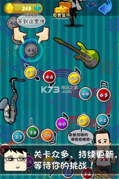 2、设计巧妙的众多难度不一的关卡,每一个关卡都将是一次全新的音乐挑战。