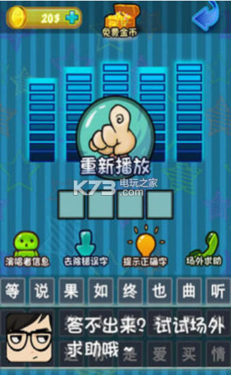 2、每一首歌曲的猜测时间为10秒;
