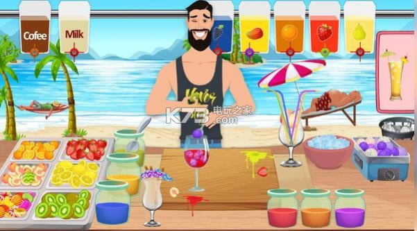 游戏中的每个鸡尾酒瓶都受到现实生活果汁的启发- 就像每个调酒师一样。您将能够检查海滩上的鸡尾酒是否容易,并且客人想要喝它们,或者如果您发现它是不可能的,并且在女孩的饮料制作游戏中挫败感。