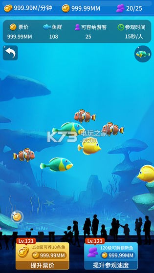 4.通过提升票价和观赏速度让收益更快,解锁更好看的鱼群种族,让大家的参观时间更长。