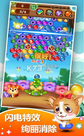 3、华丽的特效,利用反弹的操作方式,让下层的泡泡能够惊喜掉落。