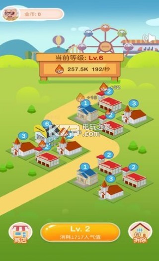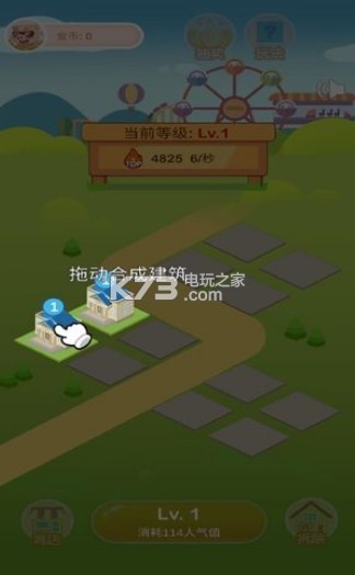 2、解锁更多空地,合成操作把相同外观的房子合体,解锁新建筑。