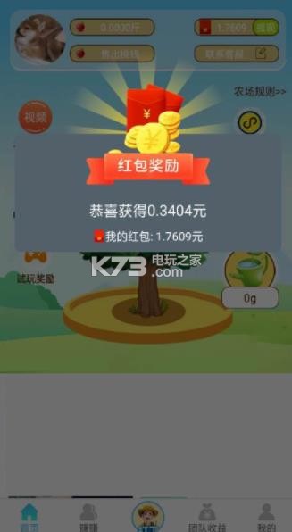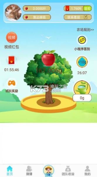 一款手机养水果,包邮到家的创意农场游戏,将网赚任务融入农场经营系统,玩家免费领养水果树种在你的农场,每天记得浇水、除虫都可以领现金红包,红包里的金额虽然比较少,但是当多多果园的等级提升,所有任务的红包金额会变大。