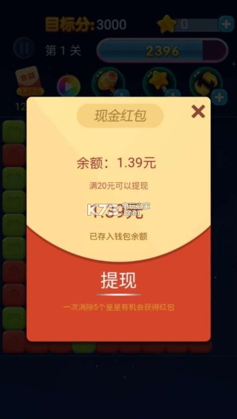 《快玩消星星红包版》这是一款关于消除的一款趣味性的赚钱游戏,经典的消除玩法中将新增加红包的玩法模式,里面的关卡也是非常的多,你将完成吸相应的关卡就可以获得红包奖励。