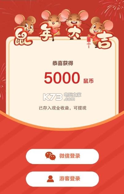 《鼠年大吉红包版》这是一款以鼠为主要角色的一款休闲的赚钱游戏,在游戏中将采用的合成的游戏玩法,多种赚钱的方式,让你可以轻松的赚红包,让你可以边玩边赚钱。