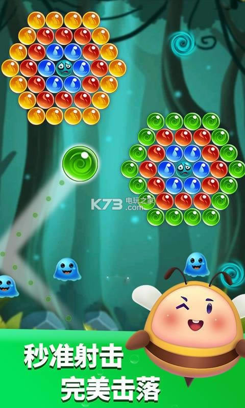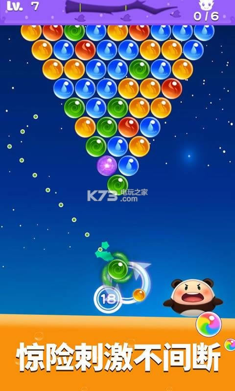 1、发射气泡,将3个或更多气泡颜色相同的气泡击落,使它们消除;