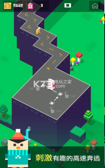 2、顺着道路的防线前进,你只需要集中注意力去躲避障碍就行;