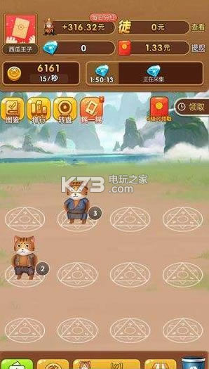 3、你可以通过合成来让两只相同的猫咪合成为大的猫咪,猫咪可以直接生崽赚钱。