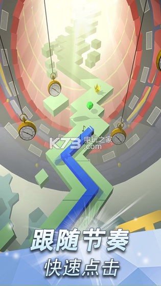 跟随音乐节奏点击,使线条转向,指引线条躲避障碍,到达终点。